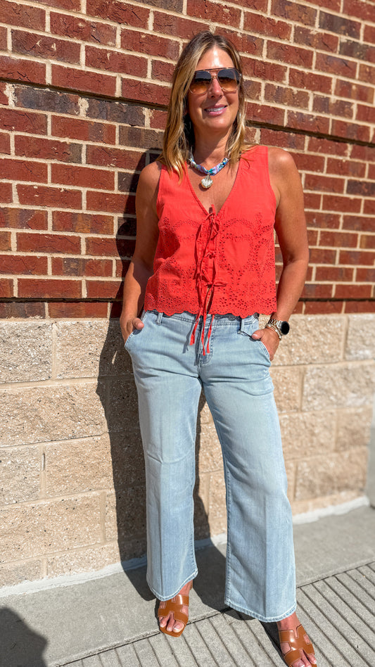 Oatmeal/Red Crochet Top