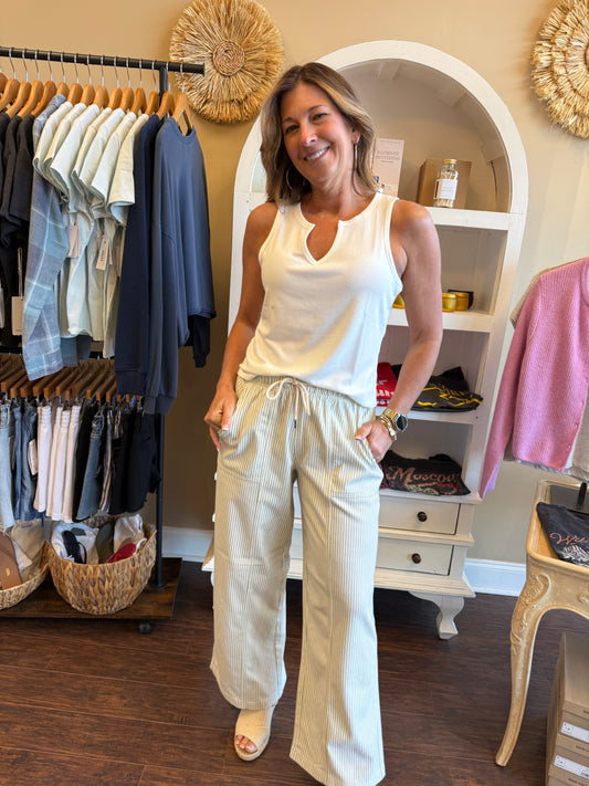 Sage and Cream Triana Stripe Pant