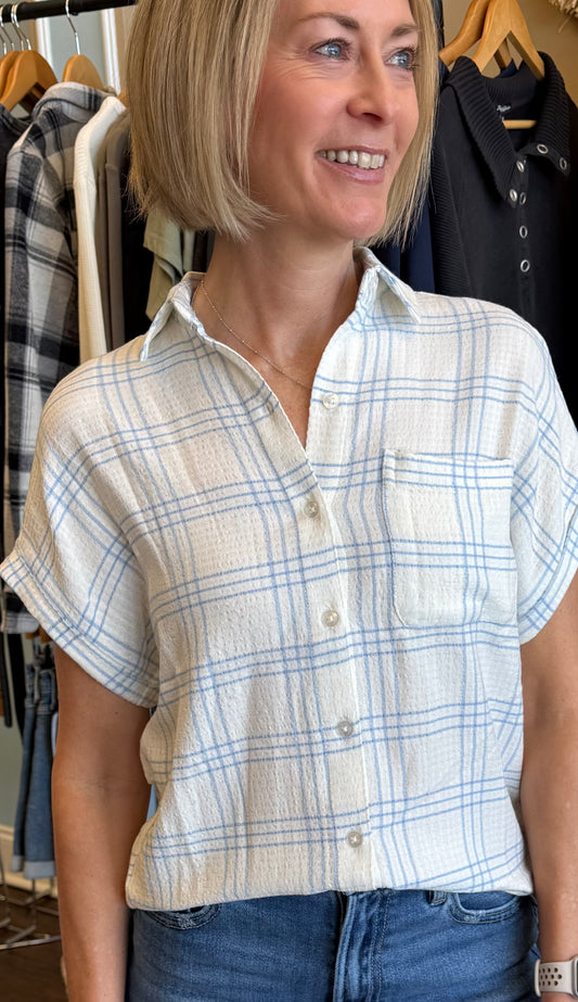 Blue and White Leetonia Dolman Shirt