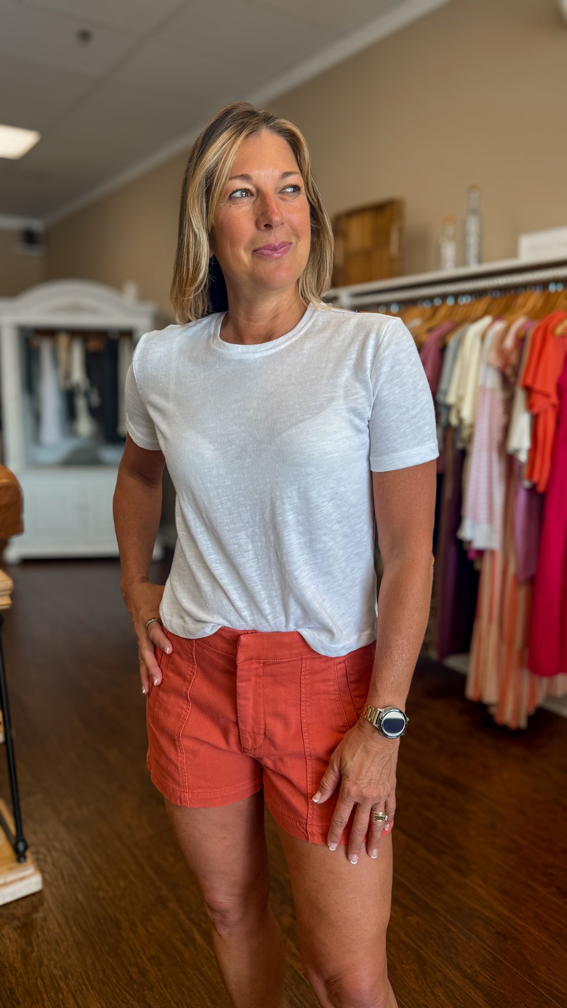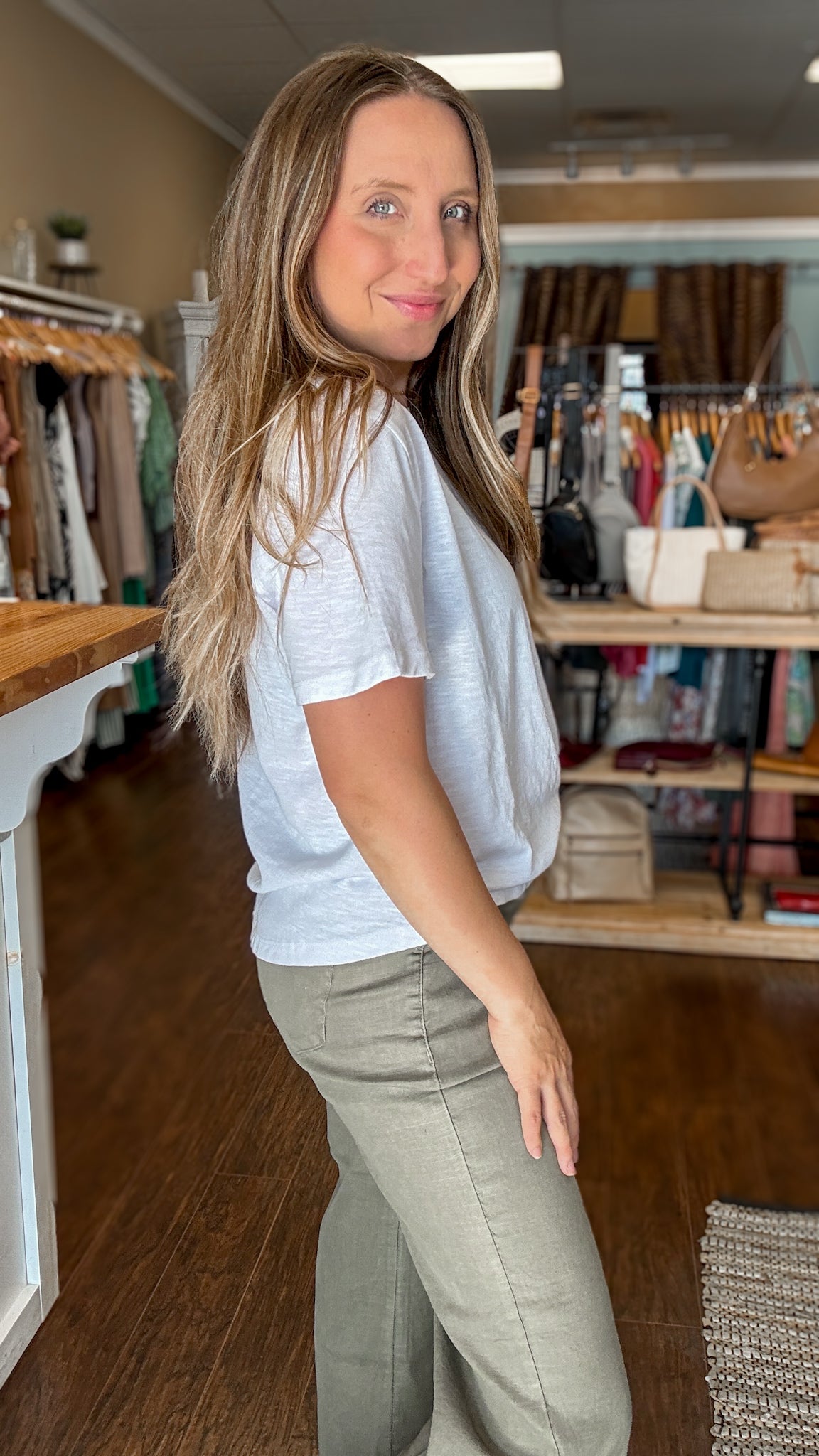 The Fable t-shirt is made of a cotton linen blend fabric. Features include a crew neckline and relaxed fit.