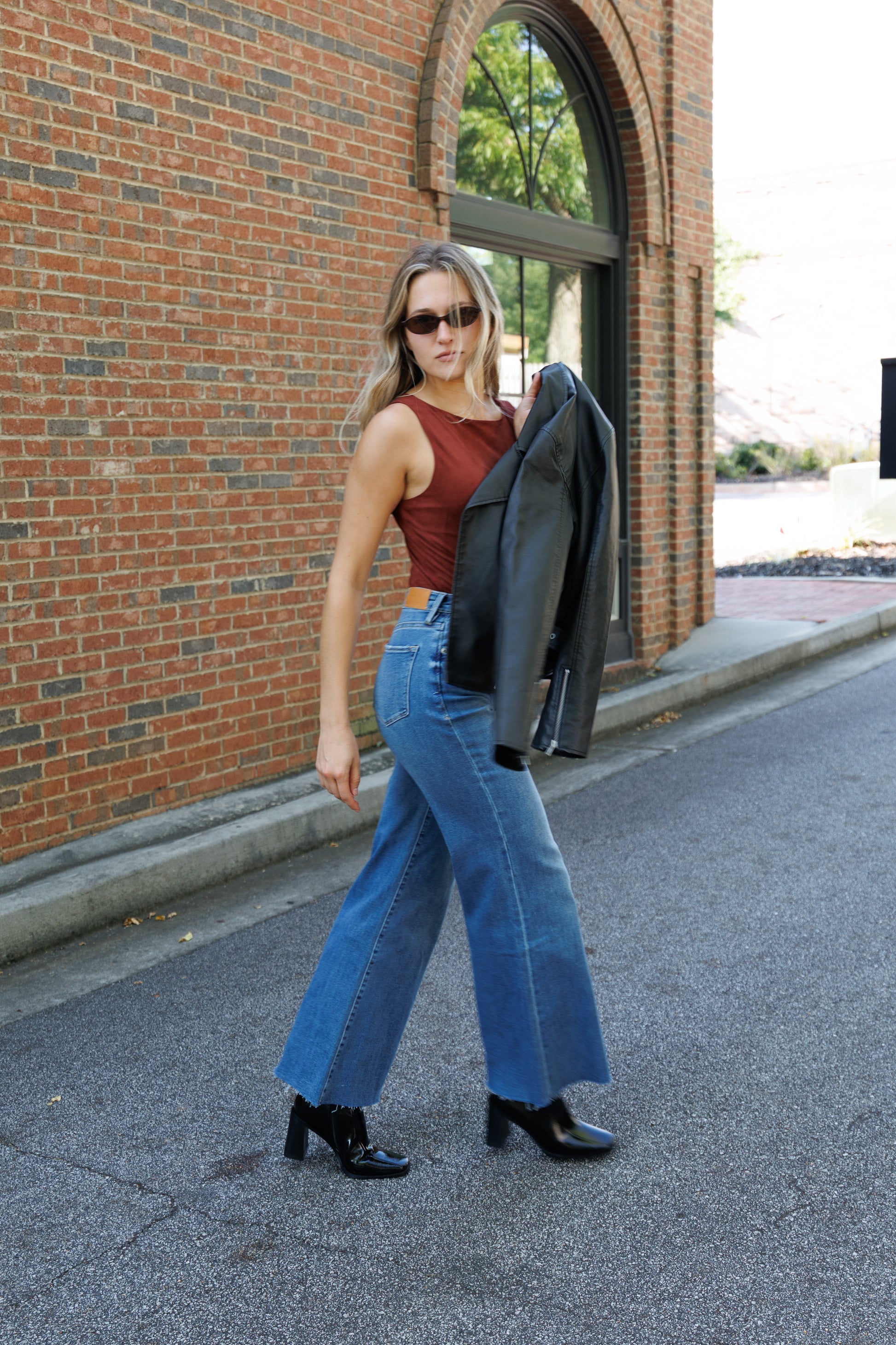 The relaxed fit, along with the stretch fabric, ensures flexibility for any occasion be it a night out or a laid-back day of errands.